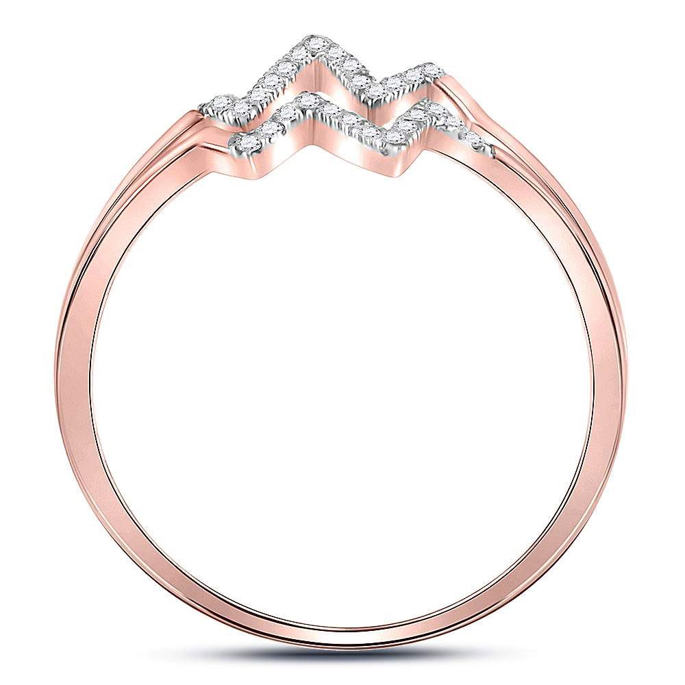 10kt Rose Gold Womens Round Diamond Double Heartbeat Ring 1/5 Cttw