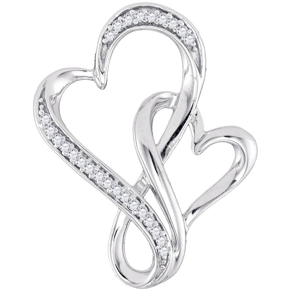 Sterling Silver Womens Round Diamond Double Linked Heart Pendant 1/10 Cttw