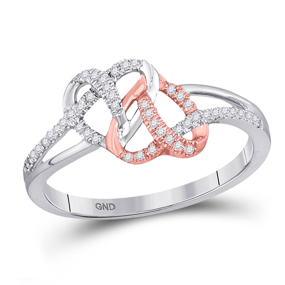 REF-18V2A - SKU: GD115175 ---- Diamond Double Linked Heart Ring 1/6 Cttw 10kt White Rose-tone Gold