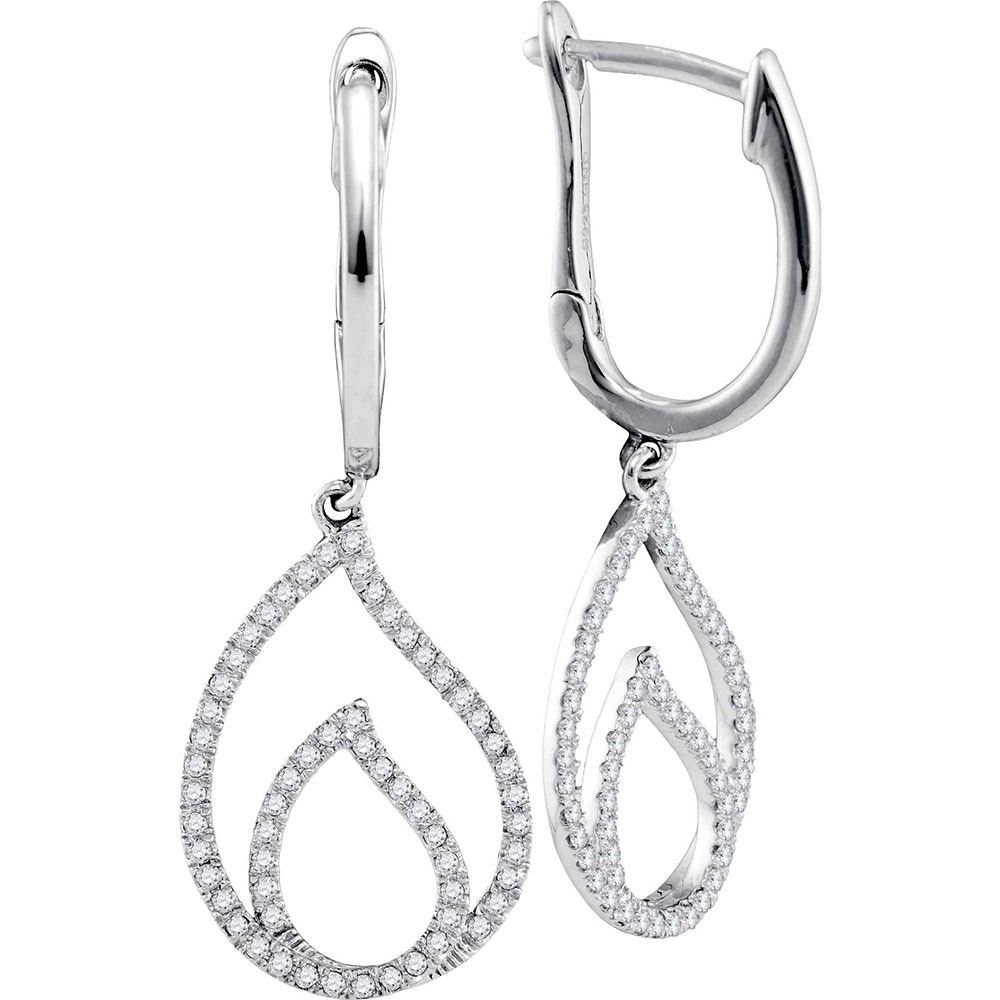 REF-32R7K - SKU: GD97871 ---- Diamond Double Nested Teardrop Dangle Earrings 1/3 Cttw 10kt White Gold