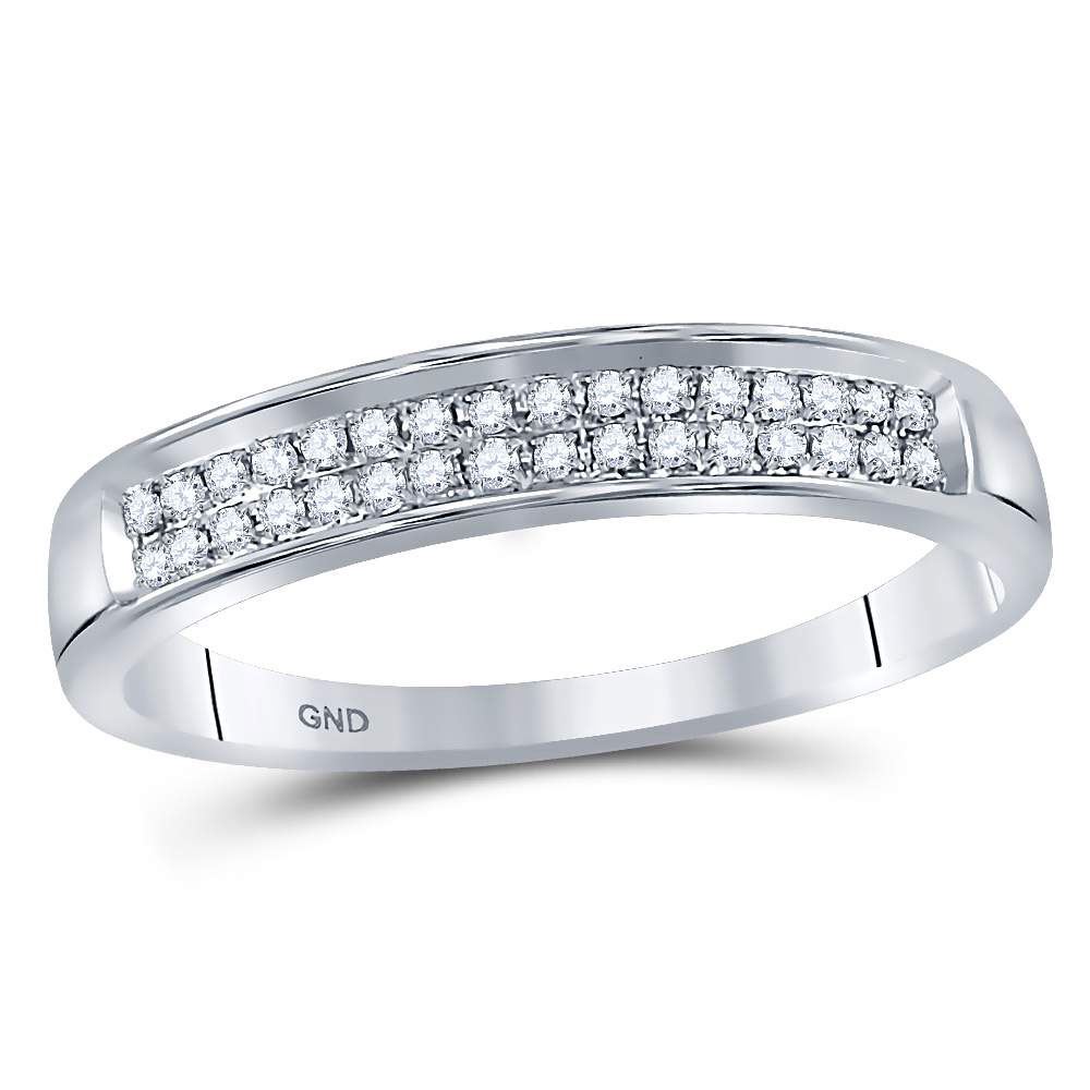 10kt White Gold Womens Round Diamond Double Row Band Ring 1/10 Cttw