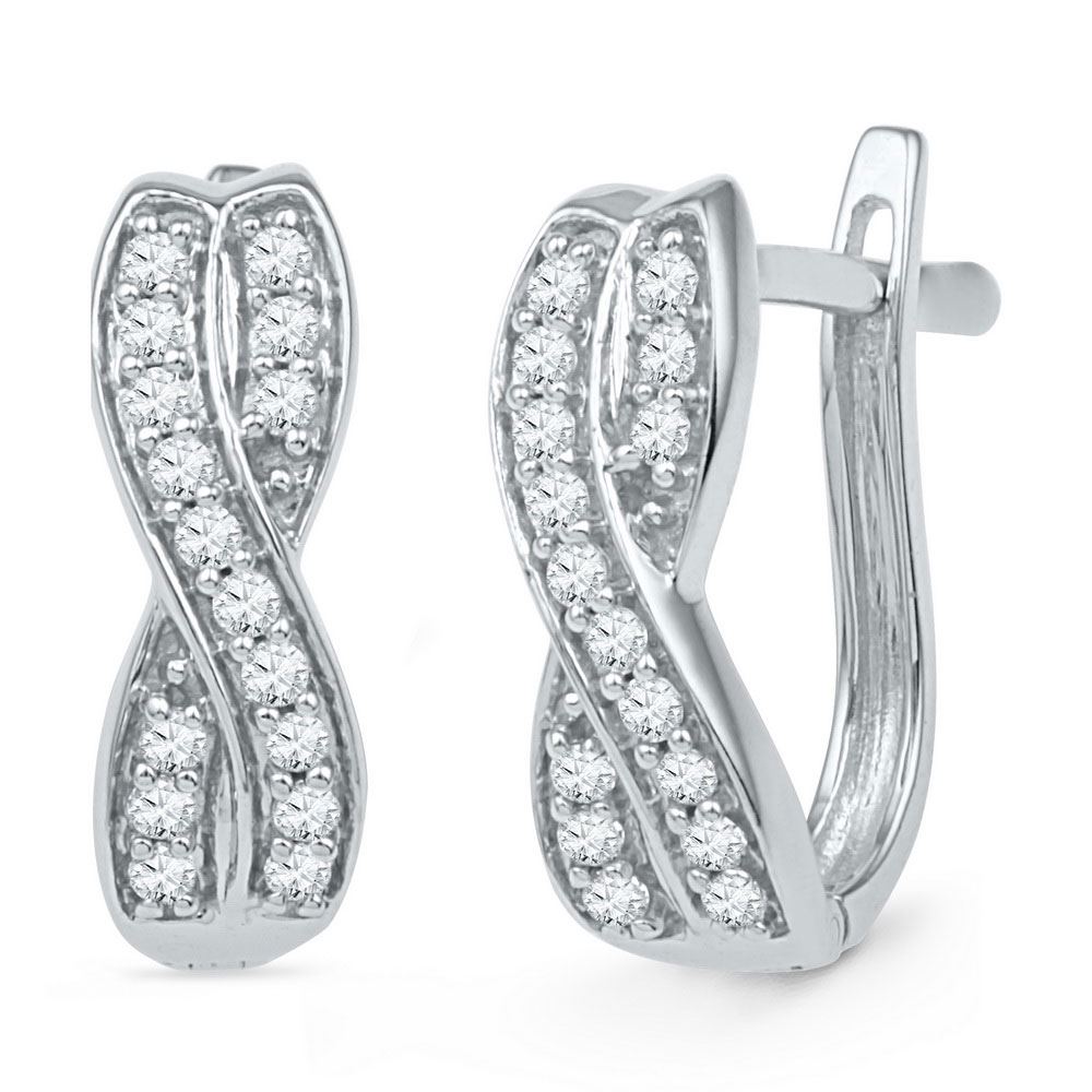 10kt White Gold Womens Round Diamond Double Row Crossover Hoop Earrings 1/5 Cttw