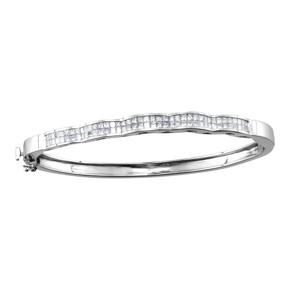 REF-297H3W - SKU: GD8996 ---- Diamond Double Row Wave Bangle Bracelet 2.00 Cttw 14kt White Gold
