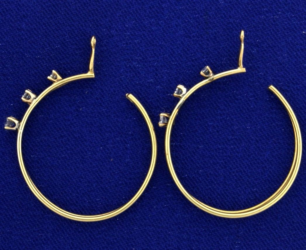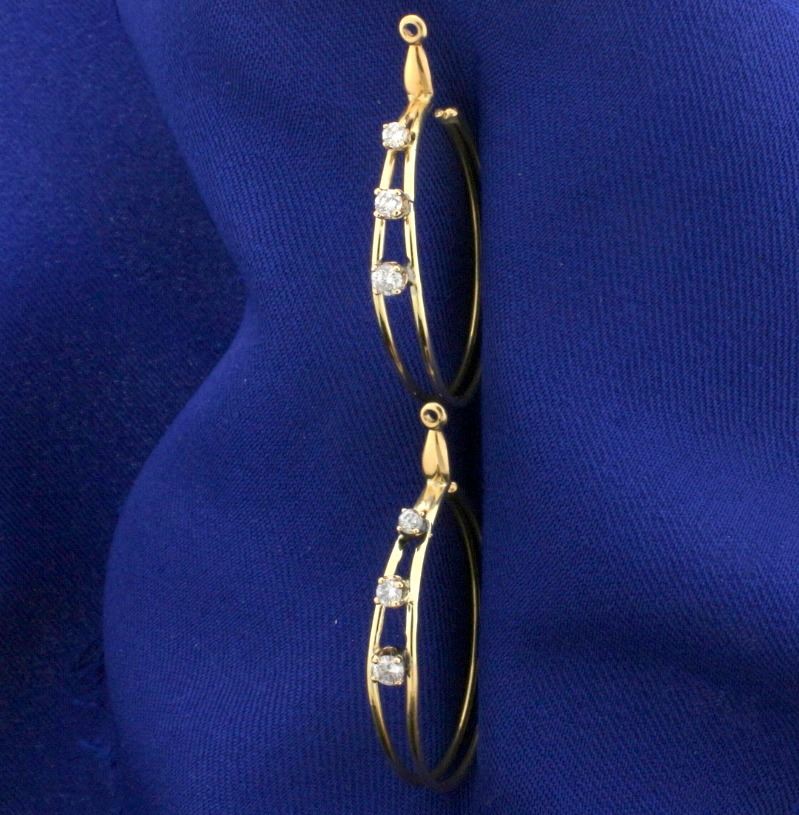 In 14k yellow gold, containing two .06ct, two .04ct, and two .03ct high quality diamonds, SI clarity/G color. 1 inch diameter. 2.6g.