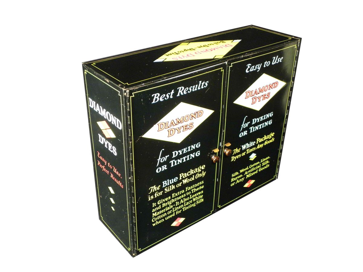 Diamond Dyes Tin Store Cabinet, Evolution of Woman. Excellent condition. 19 X 16 X 6 1/4 inches.