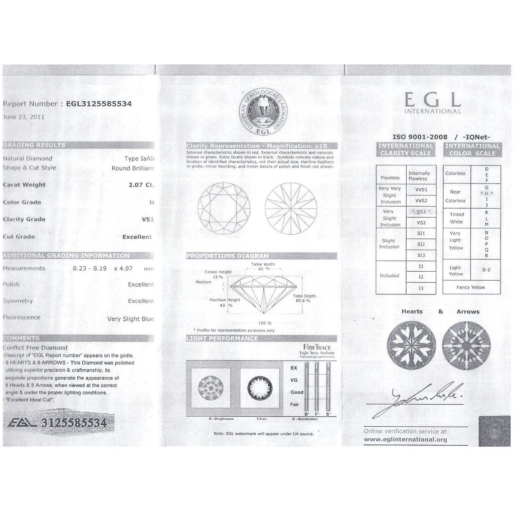 Diamond EGL Cert. ID: 3125585534 Round 2.07 ctw H, VS1 **|**|** 8.23-8.19x4.97mm;Cut Excellent; Polish Excellent; Symmetry Excellent; Fluo Veery Slight Blue; Depth 60.6%; table60% ; MSRP: $65000