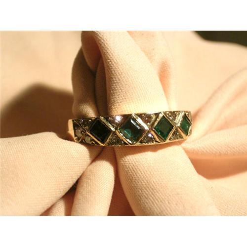 18 kt gold ring with 12 brillant cut diamonds 0.02 kt each ,and 4 emeralds,4 times three mm.