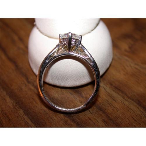 Bargain! PLATINUM solitair w/decorative 18 kt. yellow gold insets. .02 SI 1 Diamonds on each shoulder for a total of .04 DIAMONDS! Center stone CZ. Head will fit a 1 Ct. Diamond. Wholesalers closeout. Appraisal available.