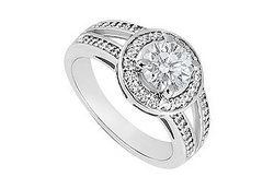 This beautiful engagement ring with brilliant-cut diamond is sparkling in the center & is surrounded by smaller round diamonds all around and on the sides too. Made in 14K white gold & has a total diamond weight (TDW) of 1.00 carat.