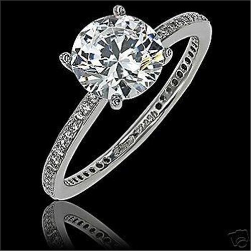 This is an eternity style engagement ring. The diamonds are set in 14kt white gold. The center stone is .70 carat with .70 side stones. The color is F/VS and G/VS. The ring is a sizable 6.50.