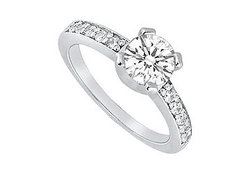A sleek row of small brilliant-cut diamonds hold a round diamond with a TDW of 0.50 ct. in its center. Made in rare rich platinum this engagement ring has a total weight (TDW) of 0.66 ct.