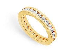 An endless circle of diamonds conveys a sense of no beginning or end a symbol of your eternal love. Brilliant-cut round diamonds are channel-set in a 14K yellow gold mounting. This eternity band has a total diamond weight (TDW) of 1.50 ct.