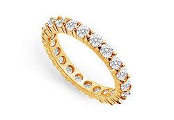 An endless circle of diamonds conveys a sense of no beginning or end a symbol of your eternal love. Brilliant-cut round diamonds are prong-set in a 14K yellow gold mounting. This eternity band has a total diamond weight (TDW) of 1.50 ct.