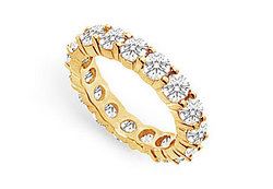 An endless circle of diamonds conveys a sense of no beginning or end a symbol of your eternal love. Brilliant-cut round diamonds are prong-set in a 14K yellow gold mounting. This eternity band has a total diamond weight (TDW) of 3.00 ct.