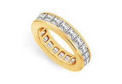 An endless circle of diamonds conveys a sense of no beginning or end a symbol of your eternal love. Princess-cut diamonds are channel-set in a 14K yellow gold mounting. This eternity band has a total diamond weight (TDW) of 3.00 ct.