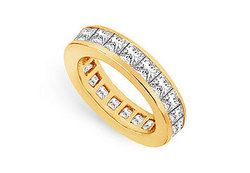 An endless circle of diamonds conveys a sense of no beginning or end a symbol of your eternal love. Princess-cut diamonds are channel-set in a 14K yellow gold mounting. This eternity band has a total diamond weight (TDW) of 3.50 ct.