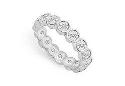 An endless circle of diamonds conveys a sense of no beginning or end a symbol of your eternal love. Brilliant-cut round diamonds are bezel-set in a 18K white gold mounting. This eternity band has a total diamond weight (TDW) of 1.50 ct.