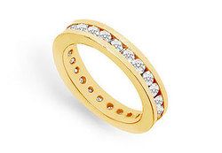 An endless circle of diamonds conveys a sense of no beginning or end a symbol of your eternal love. Brilliant-cut round diamonds are channel-set in a rich 18K yellow gold mounting. This eternity band has a total diamond weight (TDW) of 1.00 ct.