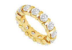 An endless circle of diamonds conveys a sense of no beginning or end a symbol of your eternal love. Brilliant-cut round diamonds are prong-set in a rich 18K yellow gold mounting. This eternity band has a total diamond weight (TDW) of 4.00 ct.