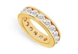 An endless circle of diamonds conveys a sense of no beginning or end a symbol of your eternal love. Brilliant-cut round diamonds are channel-set in a rich 18K yellow gold mounting. This eternity band has a total diamond weight (TDW) of 4.00 ct.