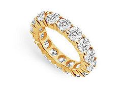 An endless circle of diamonds conveys a sense of no beginning or end a symbol of your eternal love. Brilliant-cut round diamonds are prong-set in a 18K yellow gold mounting. This eternity band has a total diamond weight (TDW) of 5.00 ct.
