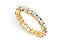 An endless circle of diamonds conveys a sense of no beginning or end a symbol of your eternal love. Brilliant-cut round diamonds are prong-set in a 14K yellow gold mounting. This eternity band has a total diamond weight (TDW) of 2.50 ct.