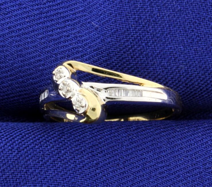 12 Taper Baguettes and 3 brilliant cut diamonds. Total diamond weight 1/5 carat! Size 6.5 1.5g