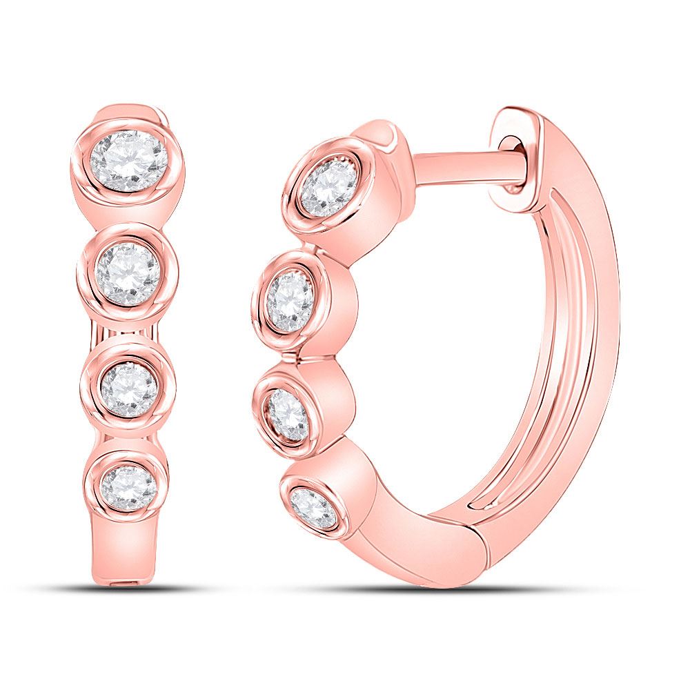 14kt Rose Gold Womens Round Diamond Fashion Hoop Earrings 1/4 Cttw