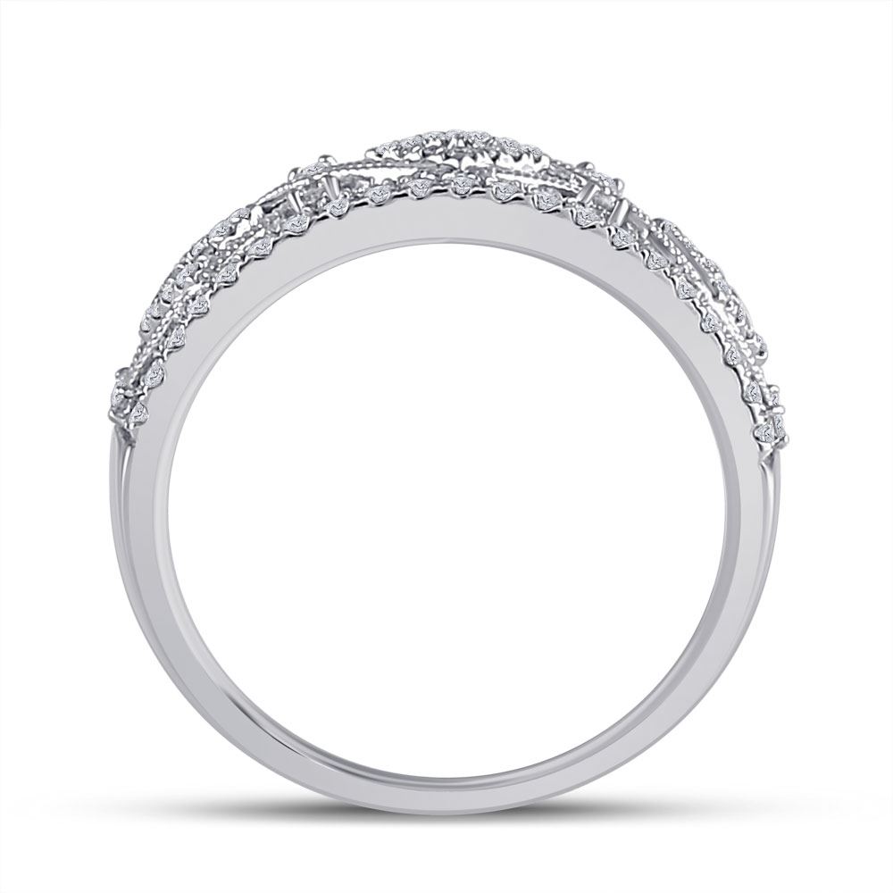 14kt White Gold Womens Round Diamond Filigree Geometric Band Ring 1/2 Cttw