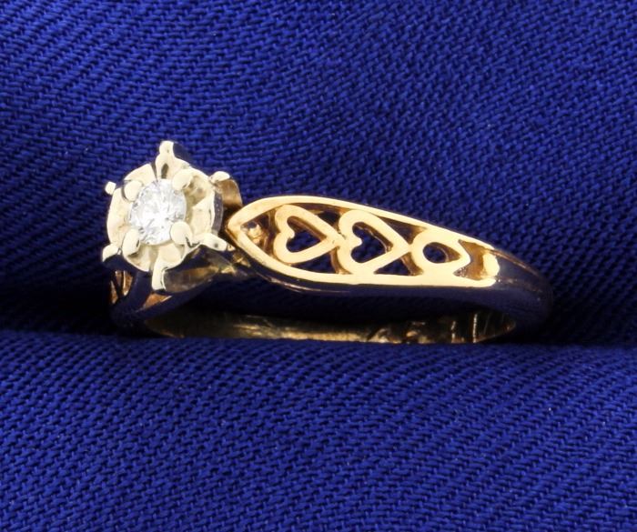 The diamond is a brilliant cut and weighs 0.07 carats with SI1 clarity and H color. This would make a nice engagement ring! Size 6. 3.0g