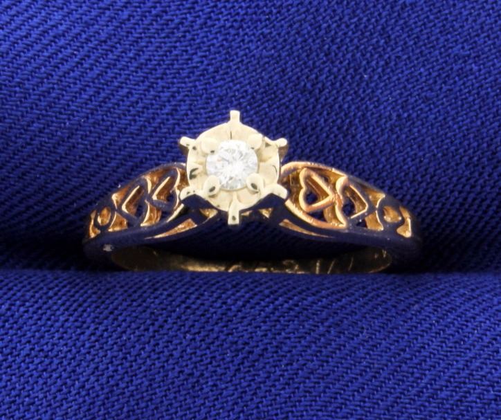 The diamond is a brilliant cut and weighs 0.07 carats with SI1 clarity and H color. This would make a nice engagement ring! Size 6. 3.0g