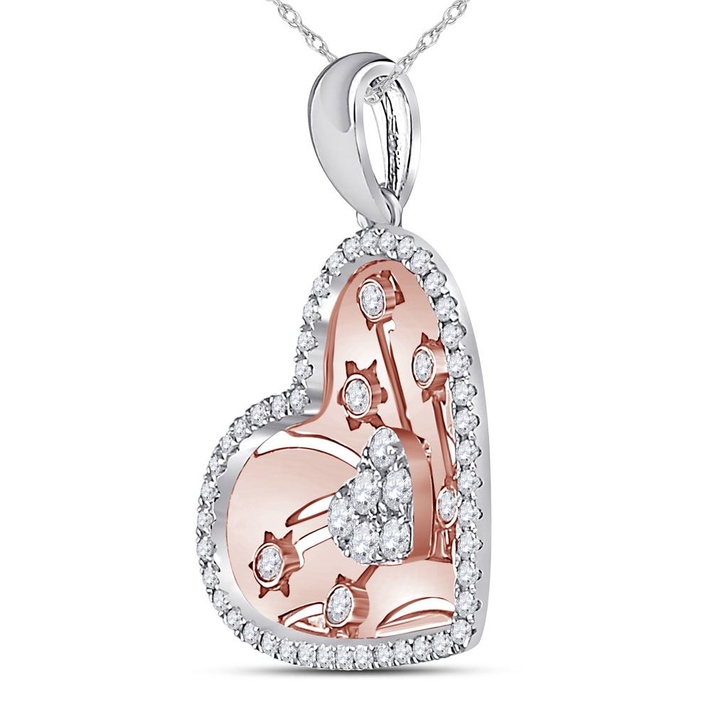 14kt Two-tone Gold Womens Round Diamond Floral Cluster Heart Pendant 1/2 Cttw