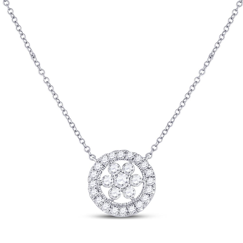 14kt White Gold Womens Round Diamond Floral Cluster Necklace 1/3 Cttw