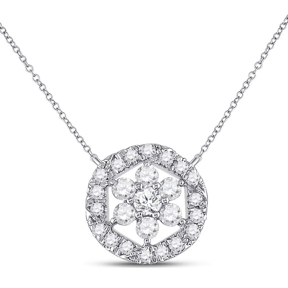 14kt White Gold Womens Round Diamond Floral Cluster Necklace 1/3 Cttw