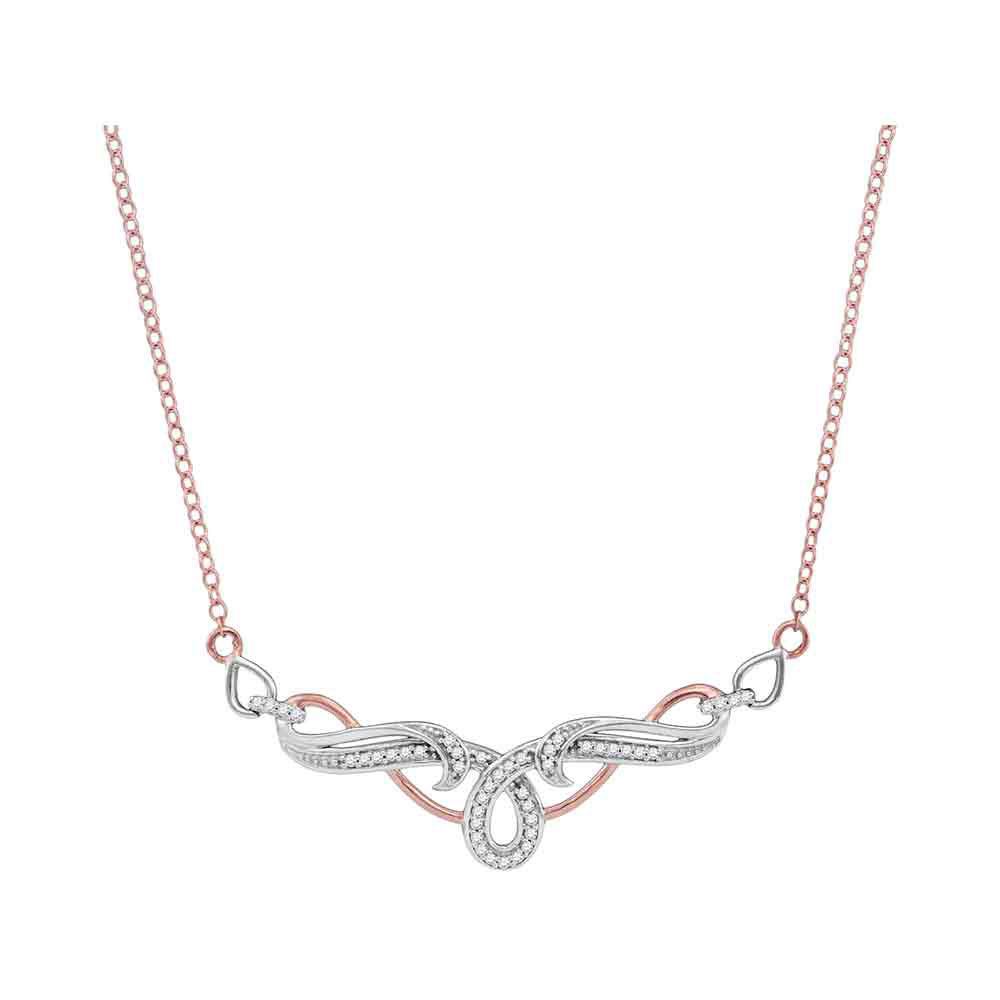 REF-17F3N - SKU: GD108191 ---- Diamond Flourished Curl Fashion Necklace 1/8 Cttw 10kt Two-tone Gold