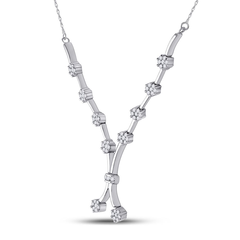 14kt White Gold Womens Round Diamond Flower Cluster Cocktail Necklace 1 Cttw