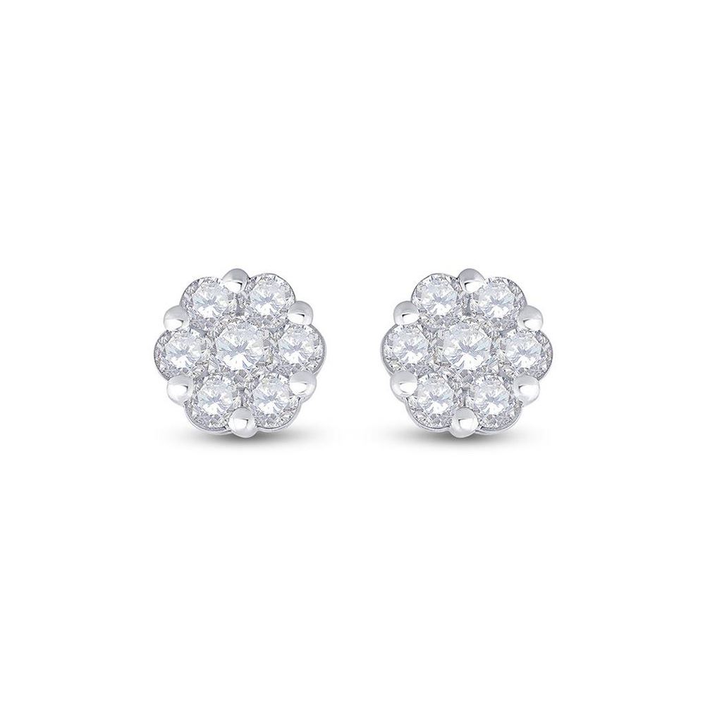 14kt White Gold Womens Round Diamond Flower Cluster Earrings 1-1/5 Cttw