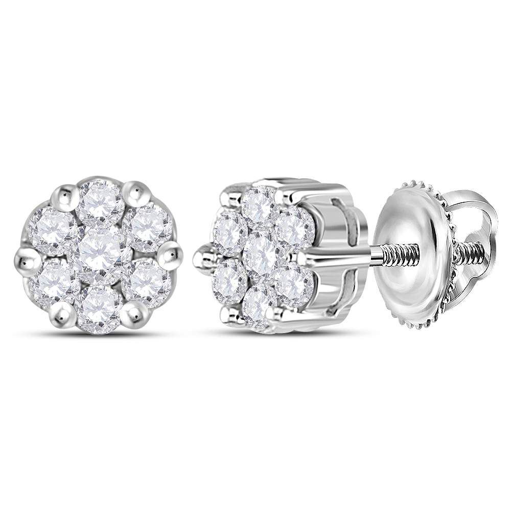 REF-21X8Y - SKU: GD11391 ---- Diamond Flower Cluster Earrings 1/4 Cttw 14kt White Gold
