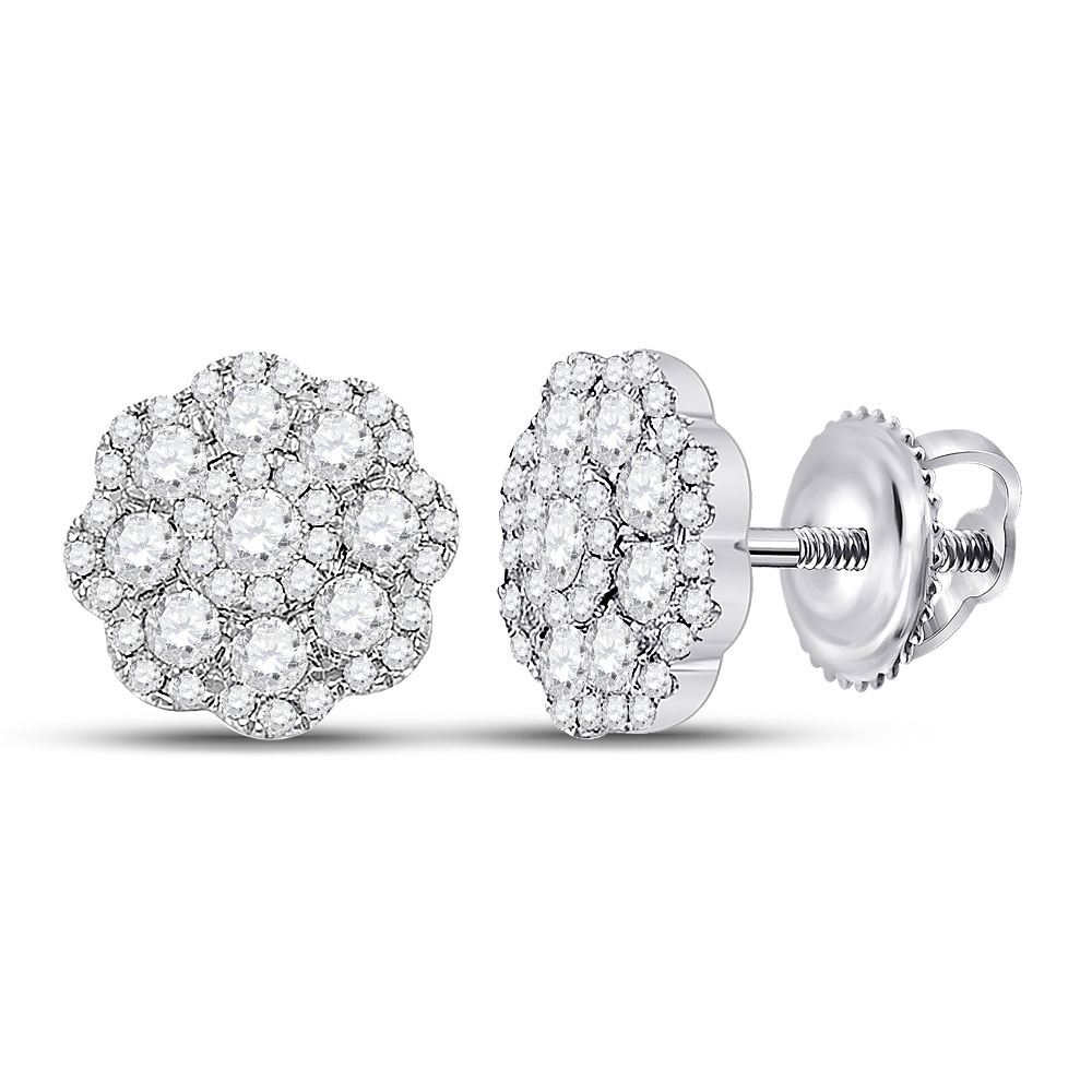 14kt White Gold Womens Round Diamond Flower Cluster Earrings 1 Cttw