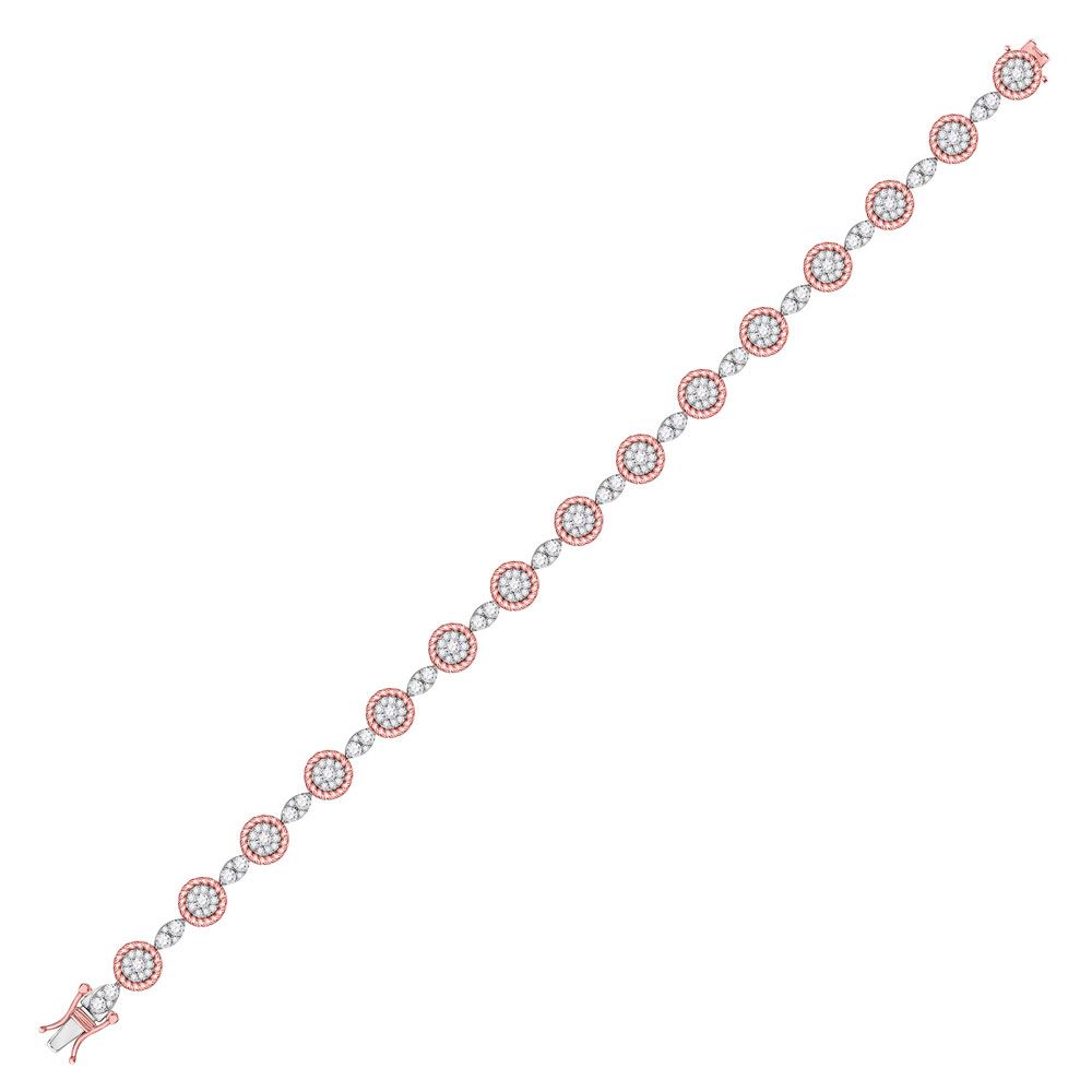 REF-218Y2X - SKU: GD117776 ---- Diamond Flower Cluster Fashion Bracelet 2-1/2 Cttw 14kt Two-tone Gold