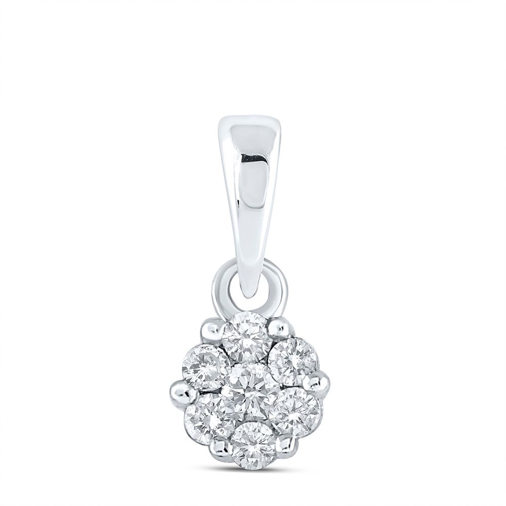 14kt White Gold Womens Round Diamond Flower Cluster Pendant 1/10 Cttw