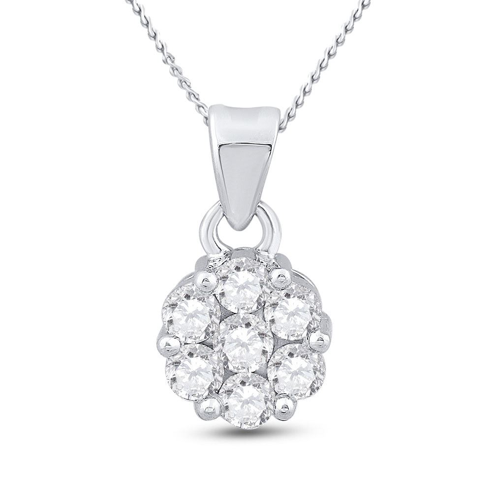 14kt White Gold Womens Round Diamond Flower Cluster Pendant 1 Cttw