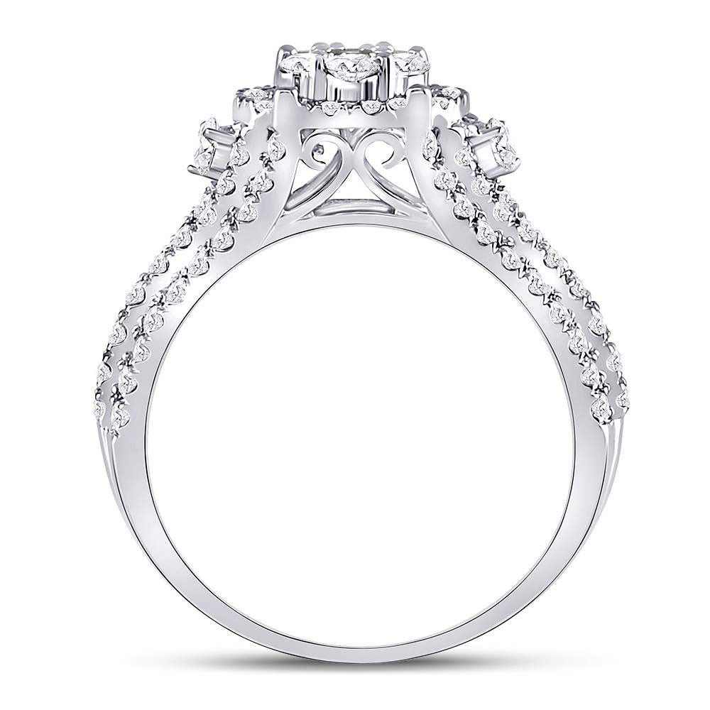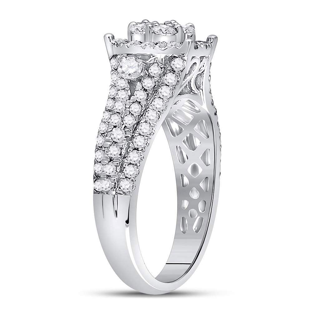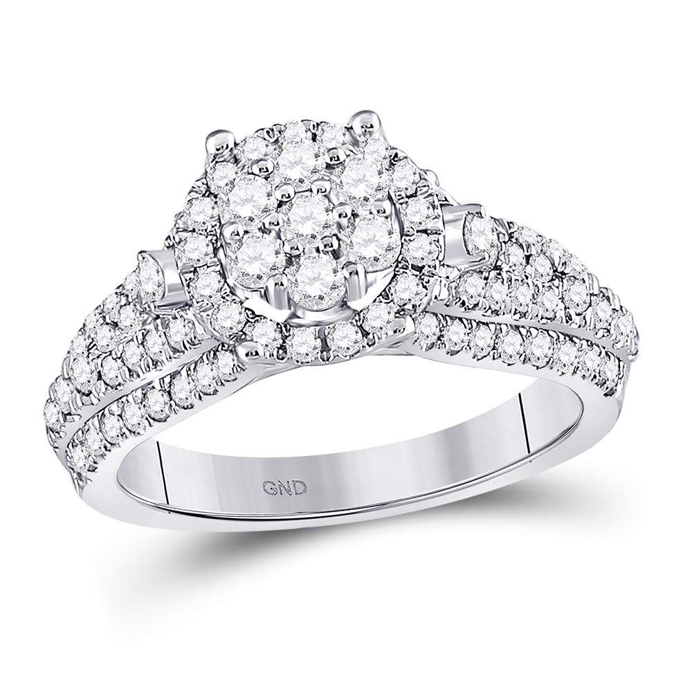 10kt White Gold Womens Round Diamond Flower Cluster Ring 1-1/4 Cttw