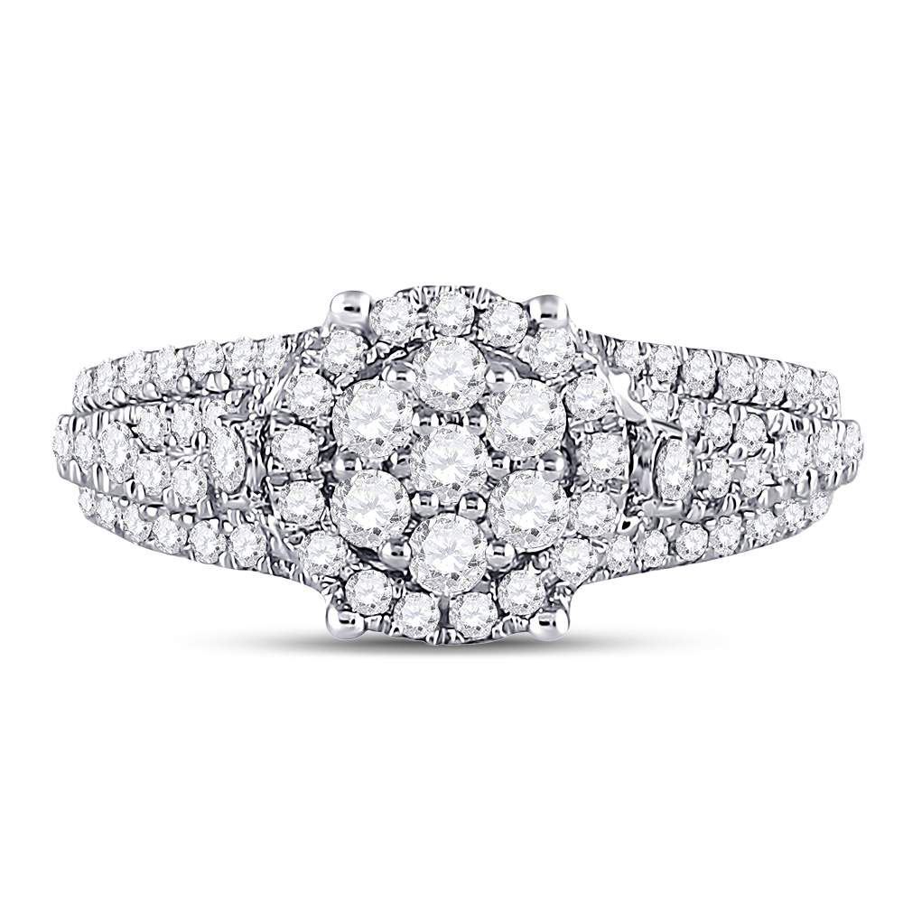 10kt White Gold Womens Round Diamond Flower Cluster Ring 1-1/4 Cttw