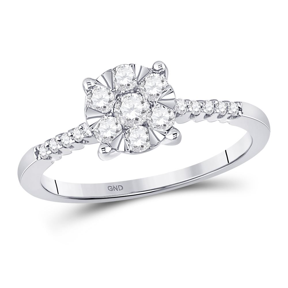 REF-40A0V - SKU: GD149218 ---- Diamond Flower Cluster Ring 1/2 Cttw 10kt White Gold