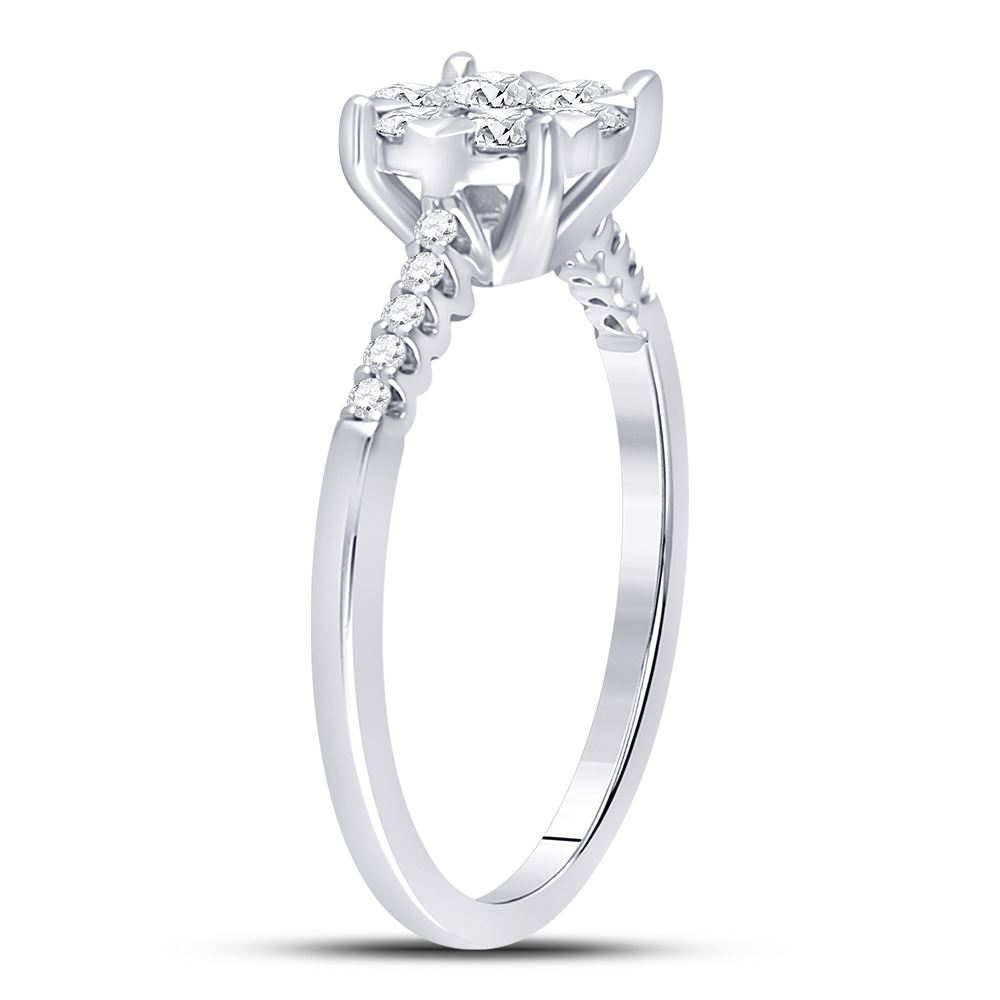 10kt White Gold Womens Round Diamond Flower Cluster Ring 1/2 Cttw