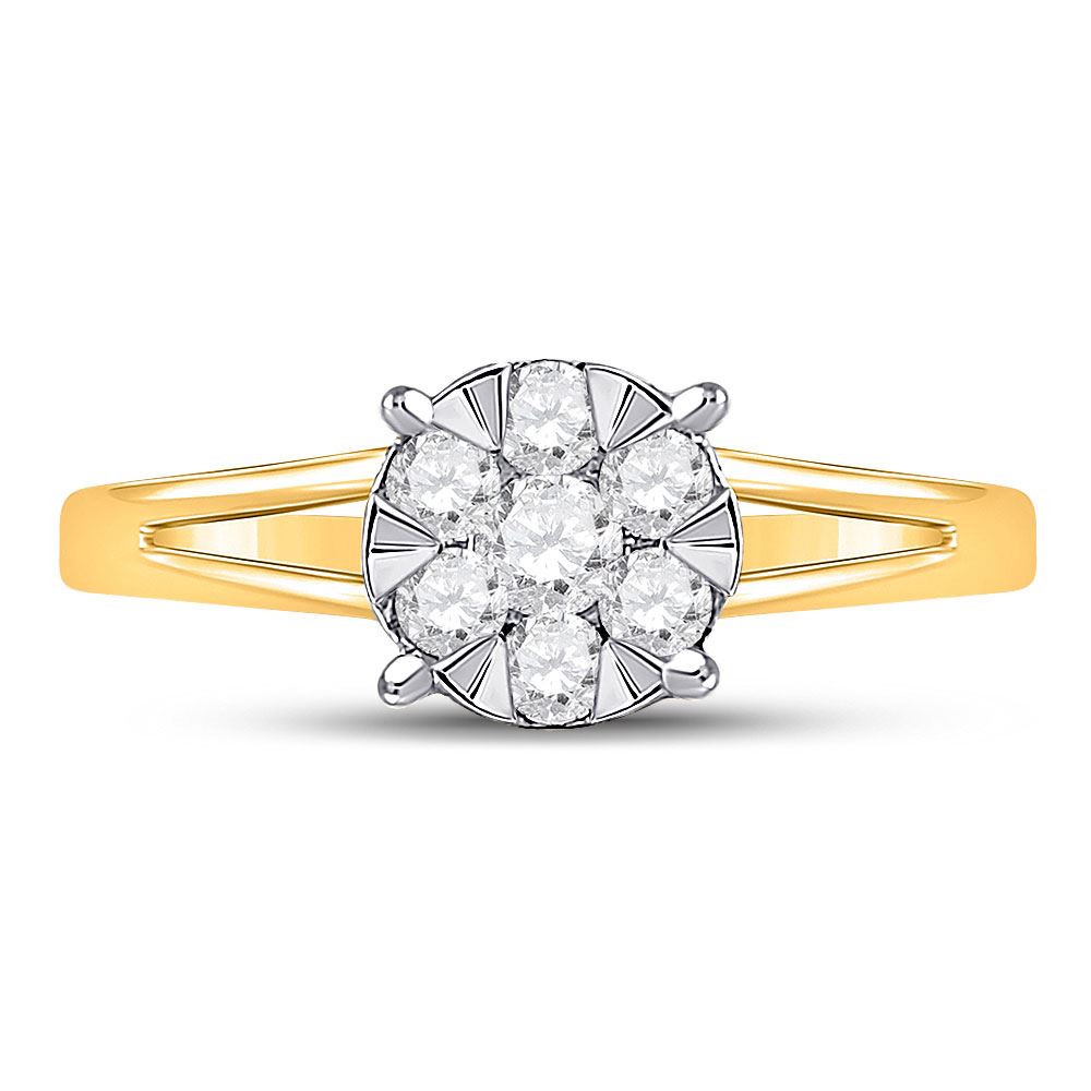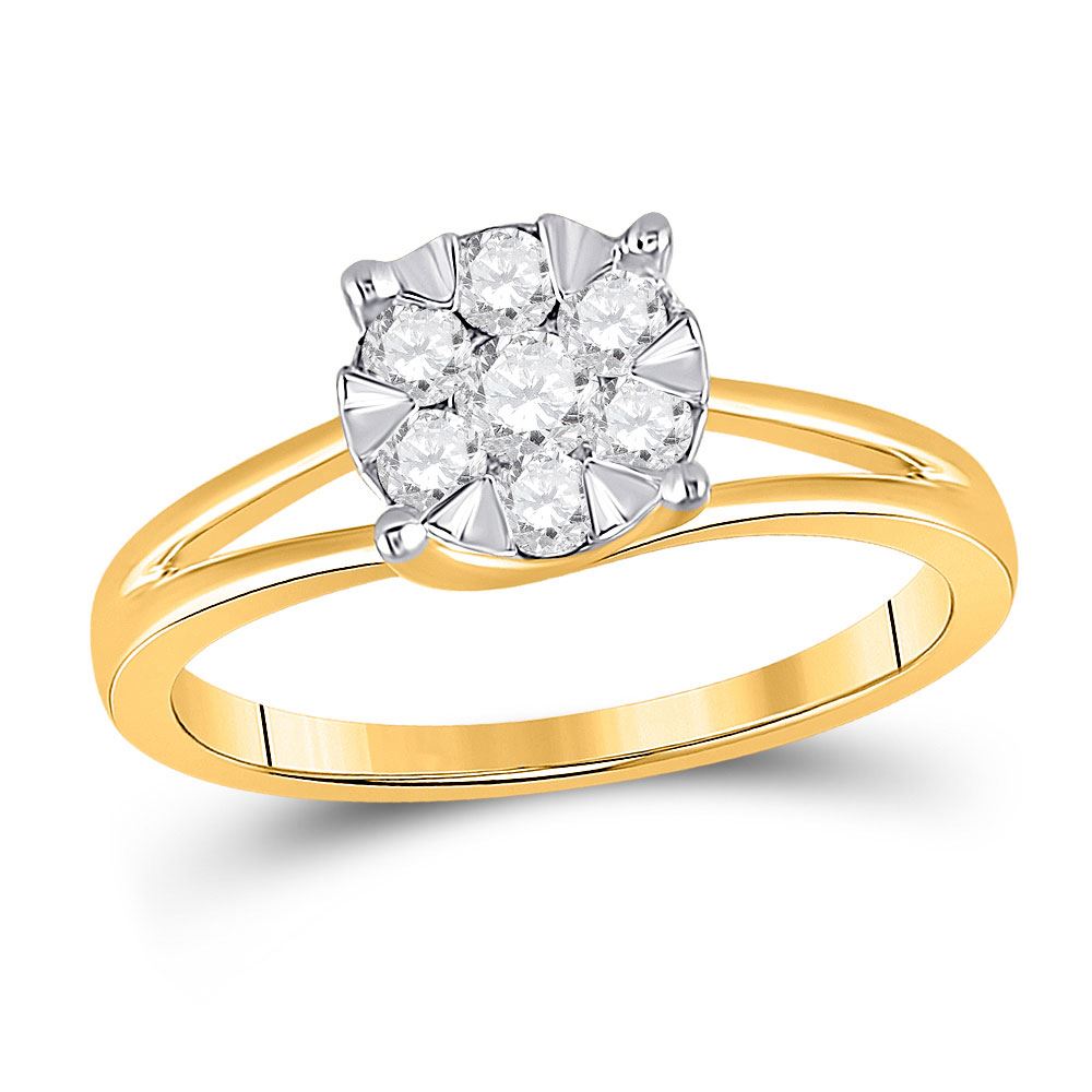 10kt Yellow Gold Womens Round Diamond Flower Cluster Ring 1/2 Cttw