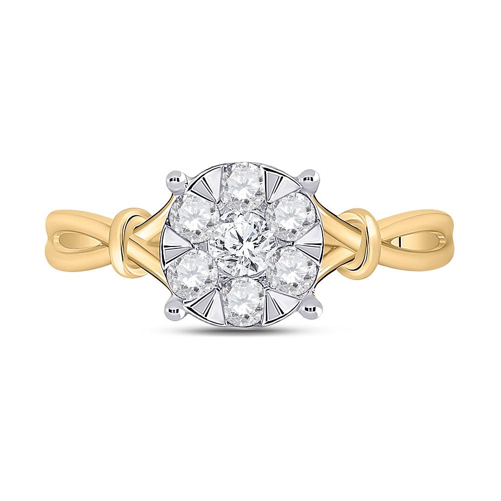 10kt Yellow Gold Womens Round Diamond Flower Cluster Ring 1/2 Cttw