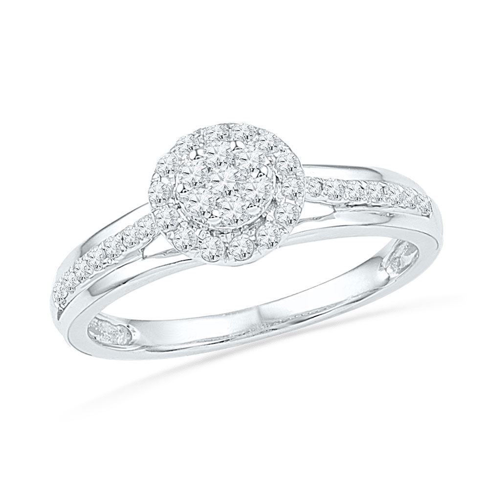 REF-31H8W - SKU: GD101501 ---- Diamond Flower Cluster Ring 1/3 Cttw 10kt White Gold