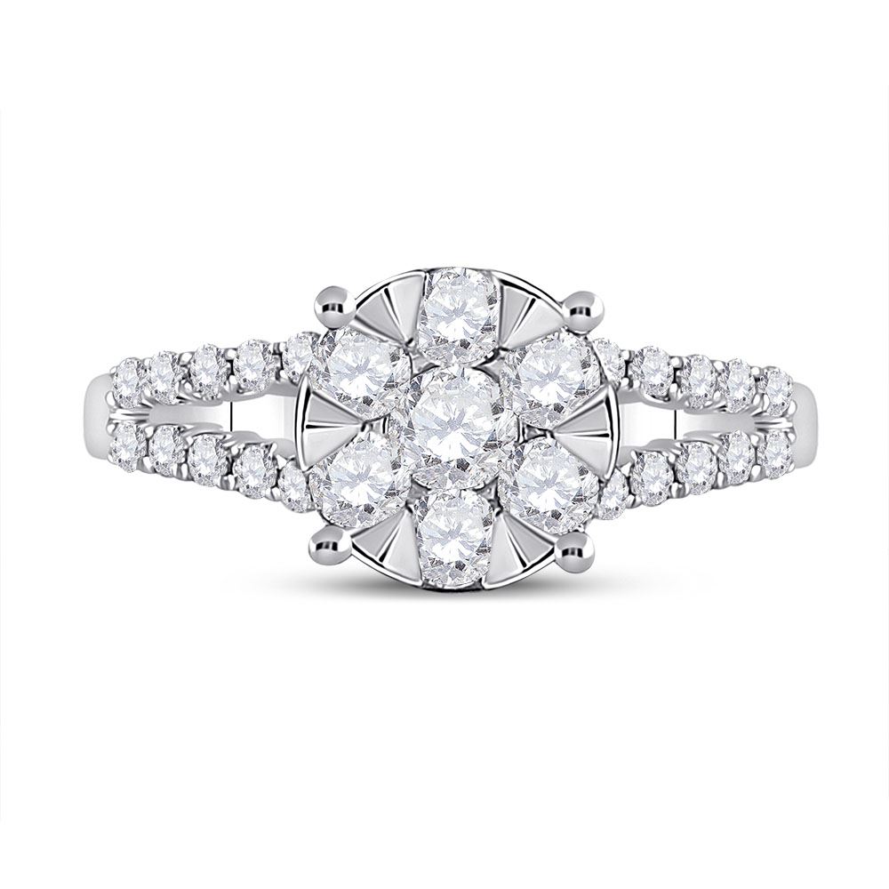 14kt White Gold Womens Round Diamond Flower Cluster Ring 1 Cttw